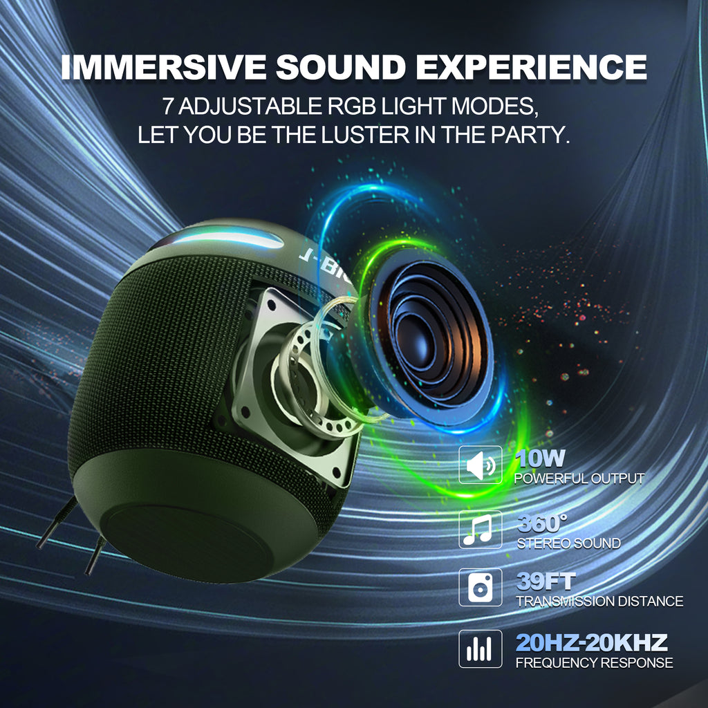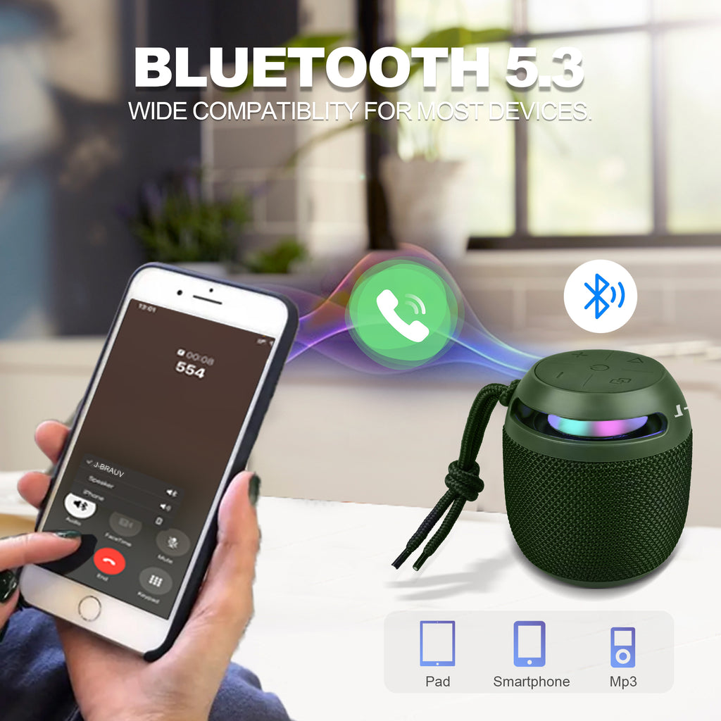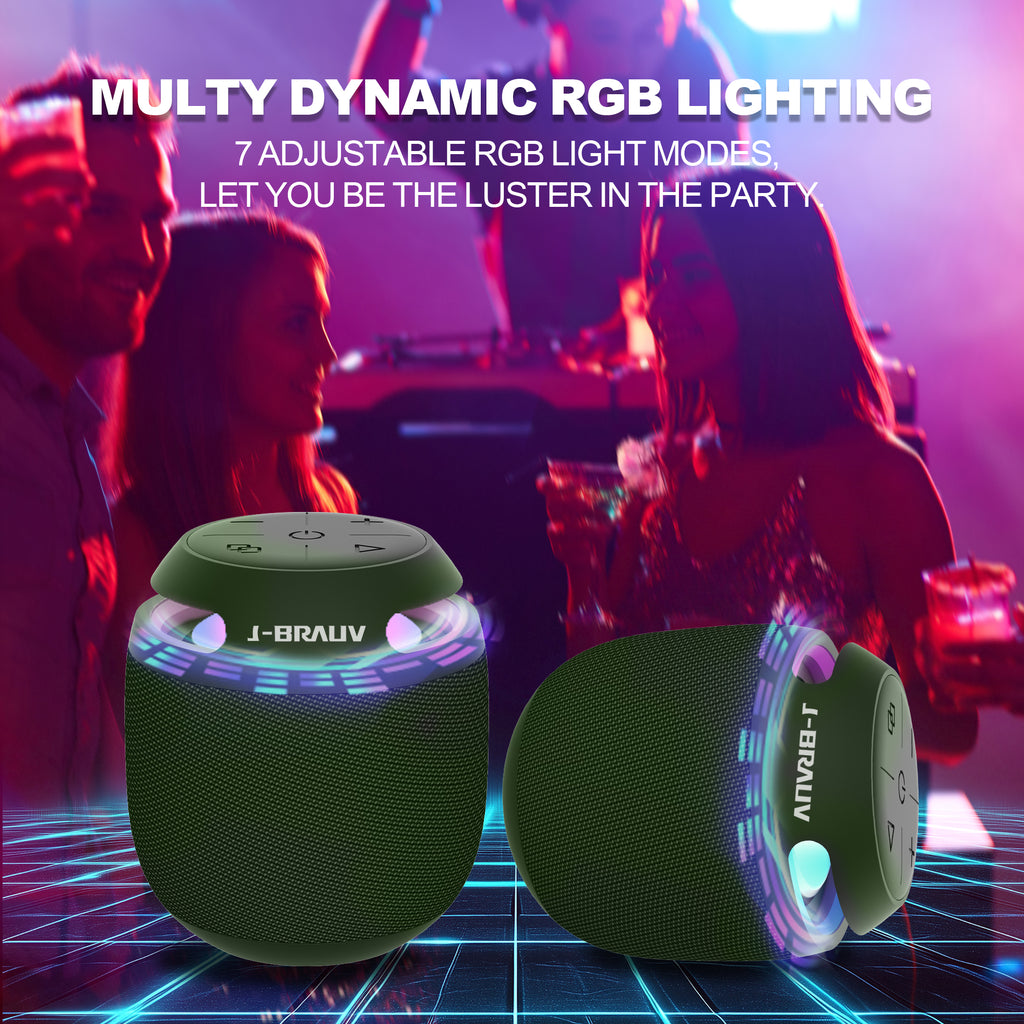 J-BRAUV Mini Bluetooth Speaker: 7 Color Changing Lights | 16W Stereo Sound, IP66 Waterproof, TWS Pairing | 15H Portable for Beach, Party, Gift